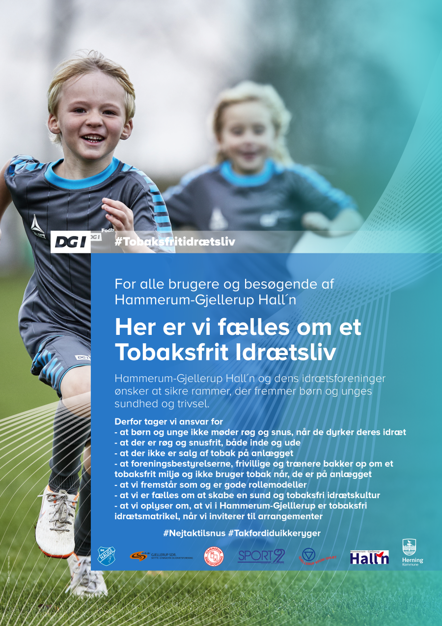 Den seneste tid har Hammerum-Gjellerup Hall’n sat fokus på og arbejdet med at skabe rammer, hvor børn og unge bliver en del et idrætsfællesskab uden røg og snus – og det støtter Hauge GIF selvfølgelig op om 😊